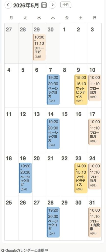 みなさん、こんにちは♪5月のスケジュールを予約サイトに掲載しました。 日曜朝のフローヨガで一週間をスッキリ始めたり、お仕事帰りの夜にベーシックヨガでリフレッシュ... -